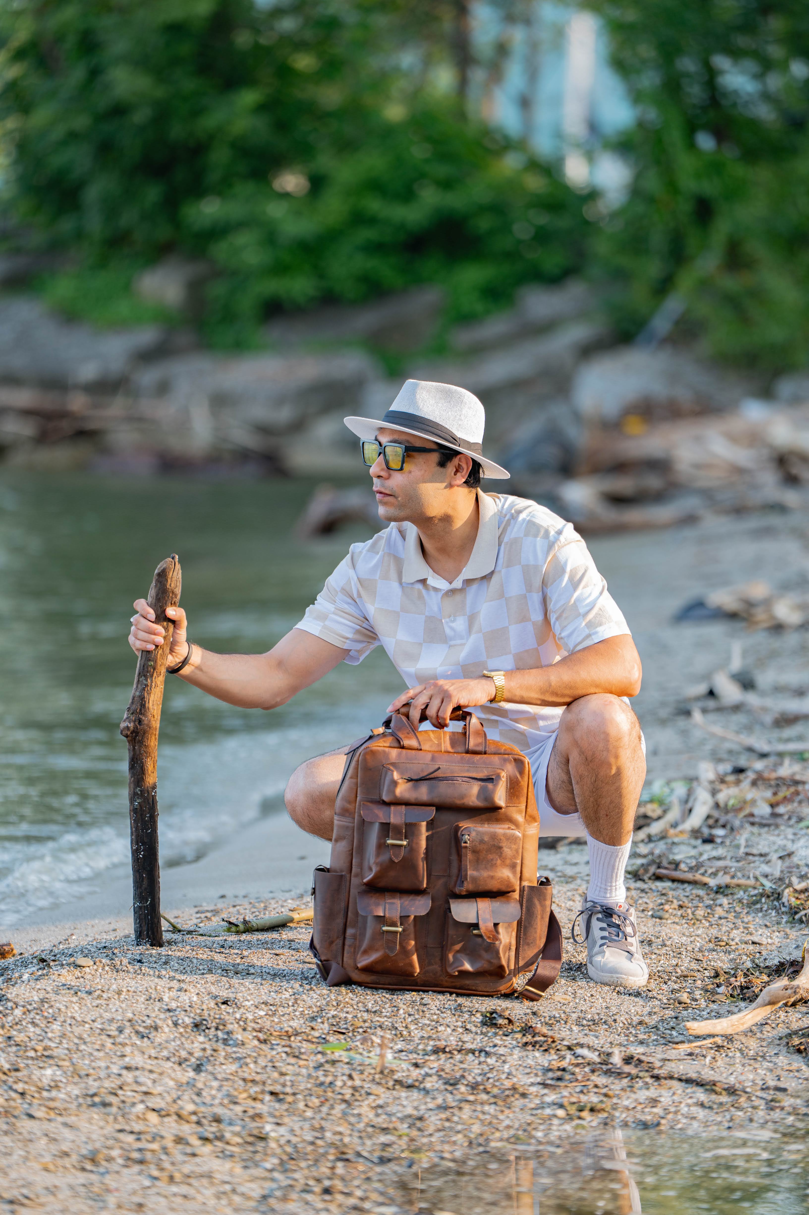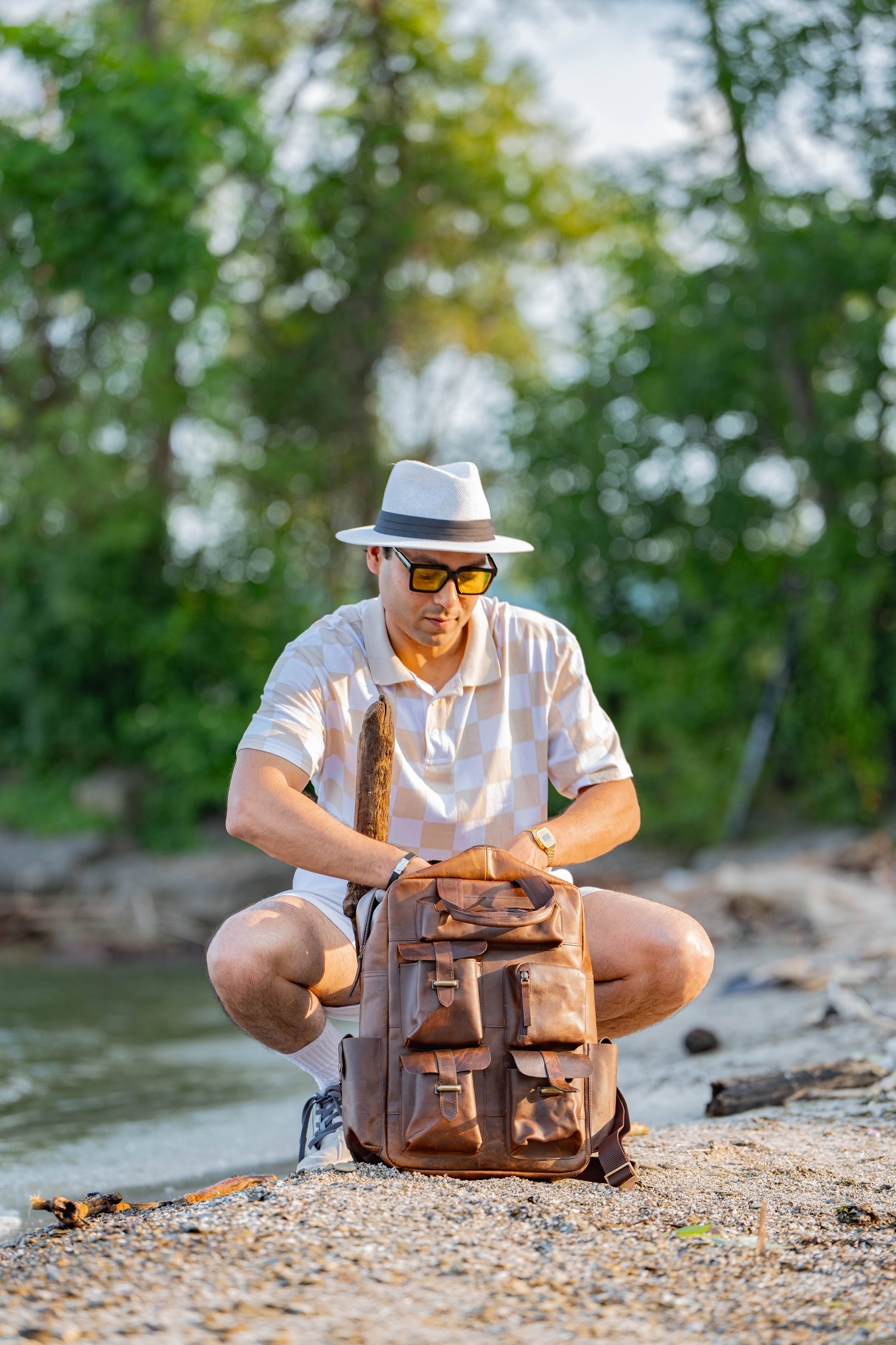 Rugged, Premium Leather: Hand-selected for its durability and ability to withstand the elements, our leather develops a rich patina over time, echoing the untold stories of your outdoor adventures. Its rugged texture and natural imperfections highlight the bag’s raw, authentic character.